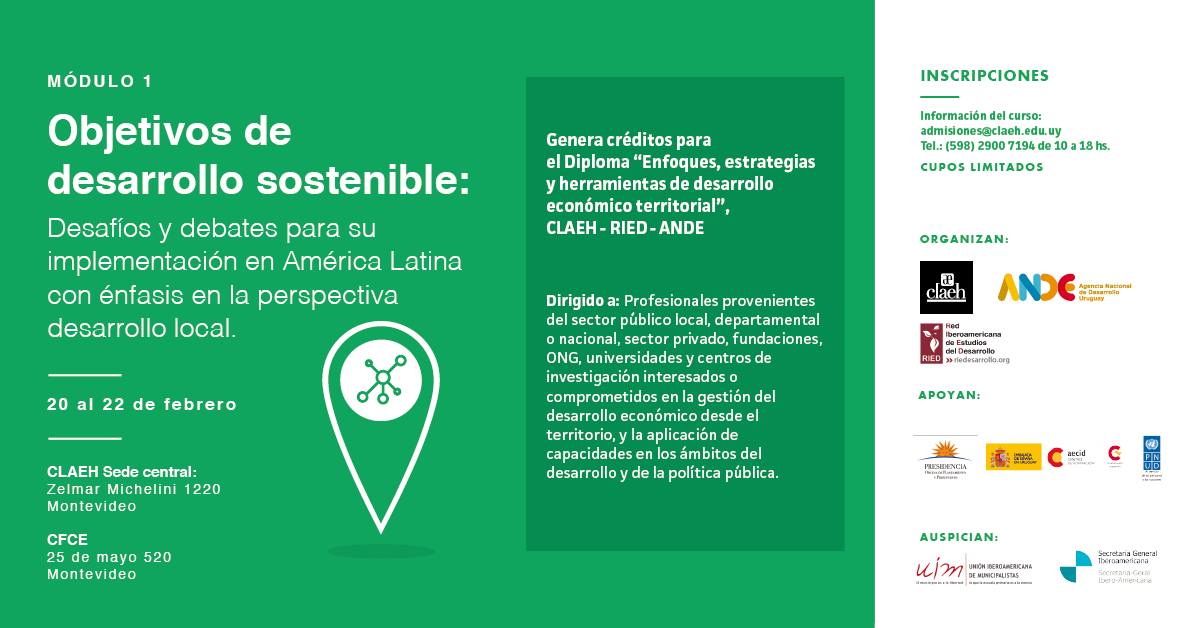 En el marco del diploma Enfoques, estrategias y herramientas de desarrollo económico territorial, organizado por CLAEH con la Red Iberoamericana de Estudios del Desarrollo y la Agencia Nacional de Desarrollo, se reciben inscripciones para su primer módulo.